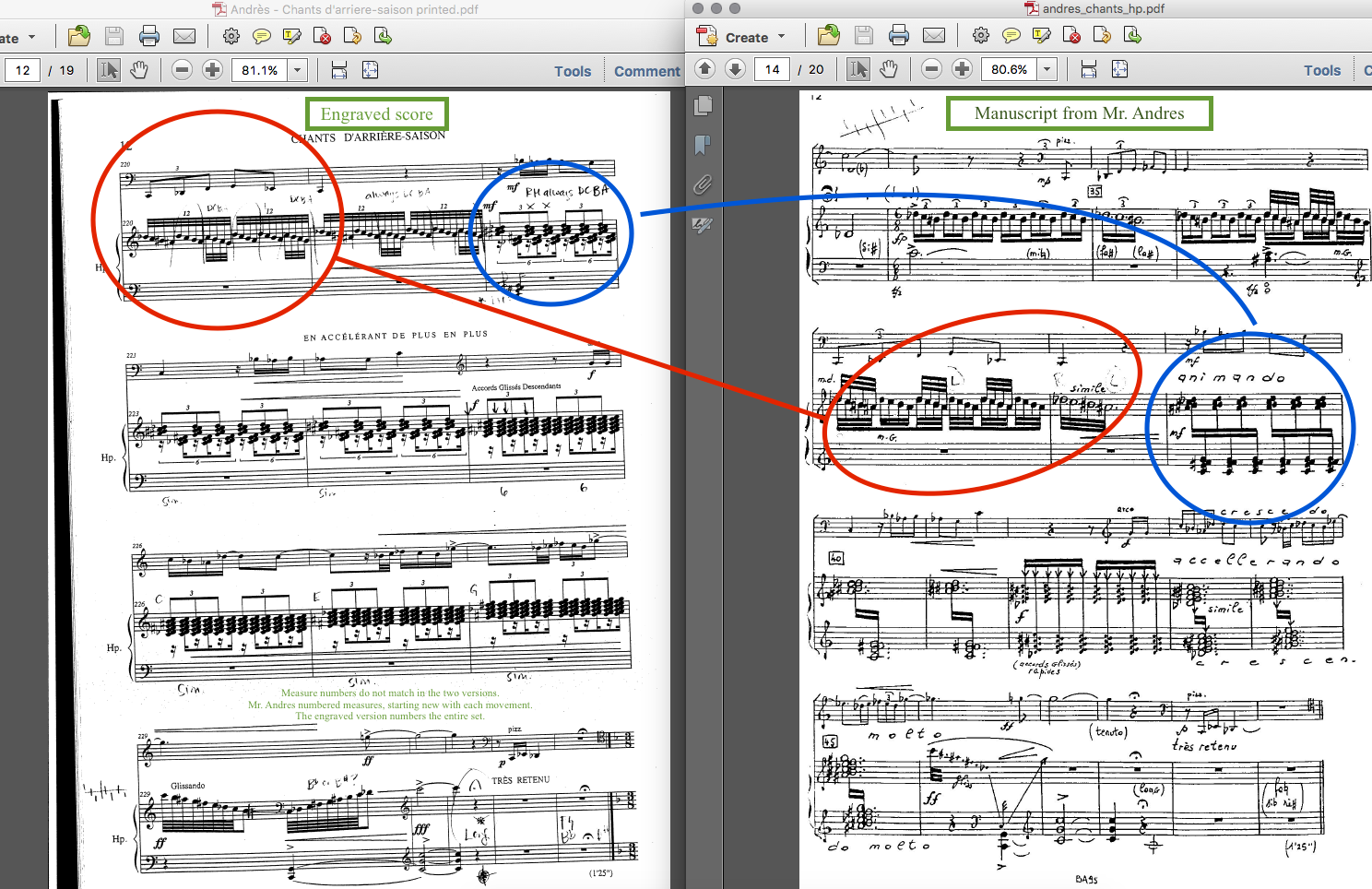This comparison between the notation choices made that differ between the manuscript of Mr. Andres and the engraved version is below.